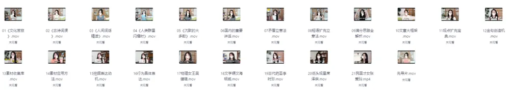 介绍 B站精品课《梦章的有效阅读与写作课》。 课程融合了高效阅读技巧、深度文学解析、实用写作技巧以及时事热点分析,旨在全面提升学习者的综合素养和应试、应用能力。 这门课将提供最直接有效的工具方法,包含15+高效阅读的积累工具、5本中外名著的精细拆解,20个创作写作实用知识点,1套全流程写作模版,助你成为一个善于阅读与写作的思考者。 ├── 01《文化苦旅》.mov ├── 02《古诗词课》.mov ├── 03《人间词话精读》.mov ├── 04《人类群星闪耀时》.mov ├── 05《沉默的大多数》.mov ├── 06国内的重要讲话.mov ├── 07矛盾立意法.mov ├── 08短…...