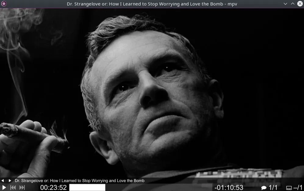 虽然 mpv 力求简约,并没有提供真正的 GUI,但它在视频顶部有一个小控制器,用于基本控制。
