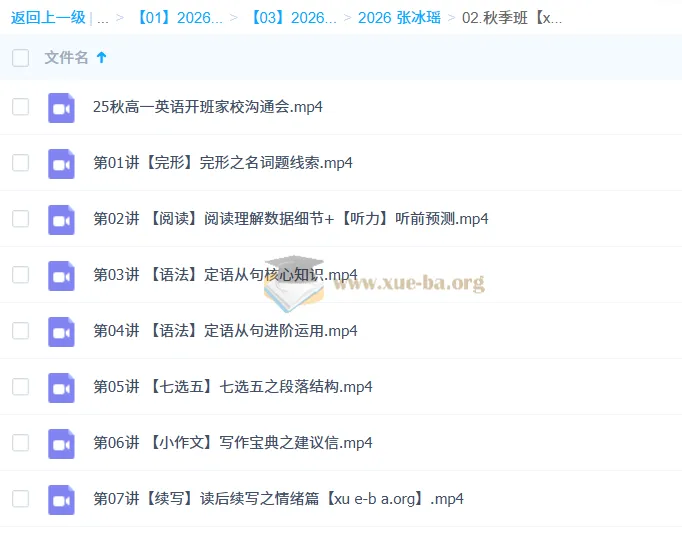 张冰瑶 2026高一 高中英语 暑假班 秋季班 更新中
