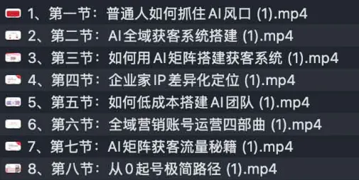 AI短视频矩阵获客实操课,企业低成本精准获客,课程。 本课程围绕AI短视频矩阵获客展开,旨在帮助企业以低成本实现精准获客。课程系统介绍了从AI短视频营销时代的开启,到如何认识并构建矩阵营销体系,再到五步搭建矩阵、实现四重定位精准获客的详细流程。通过讲解多种场景下的素材拍摄、矩阵思维快速起号、客户资源高效转化、文案生成和爆款视频剪辑的实操技巧,课程为企业提供了一站式视频管理与多账号线索聚合方案,同时利用数字人技术和AI管理策略进一步降本增效,助力企业在激烈的市场竞争中实现快速转型和高效增长。 ├── 01.AI短视频获客时代已来.mp4 ├── 02.初步认识矩阵营销.mp4 ├── 03.五步…...