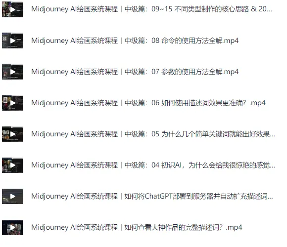Midjourney AI绘画系统课,零基础新手入门保姆级教程(17节视频),资源下载。