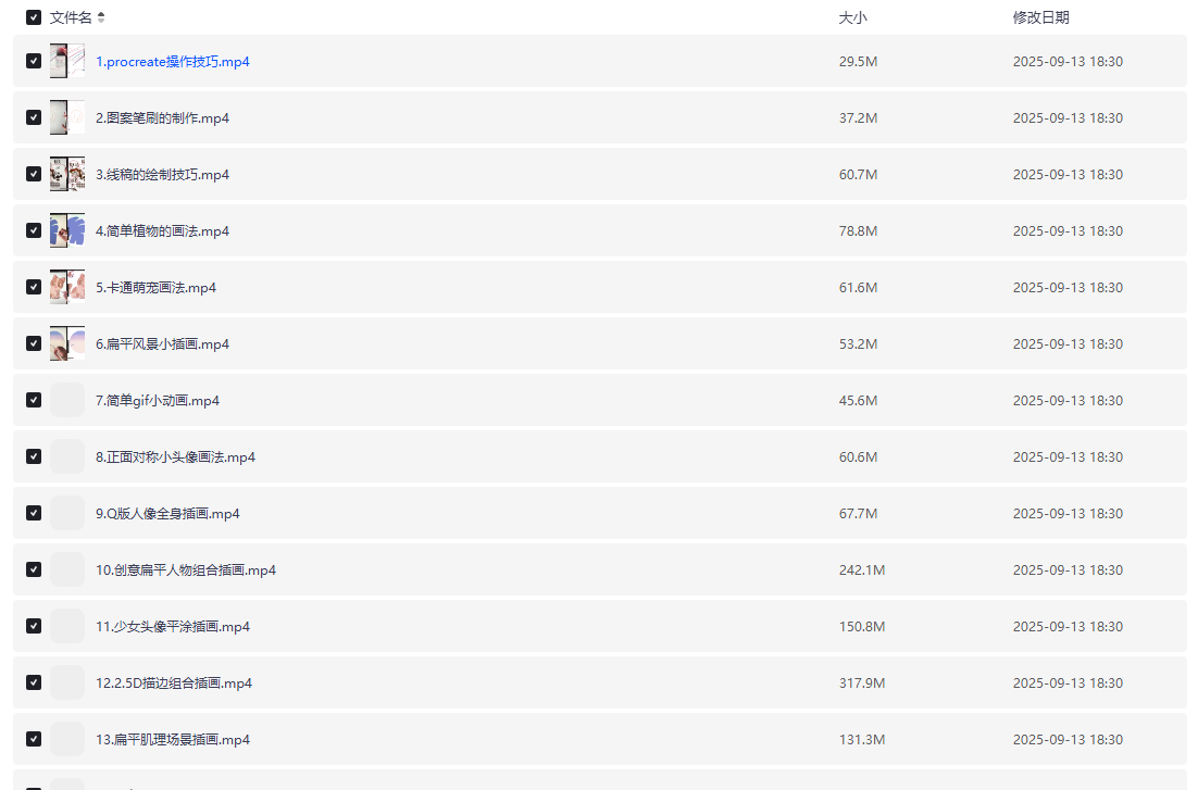 • 夸克网盘 iPad插画零基础入门第13期课程 【6.8GB】