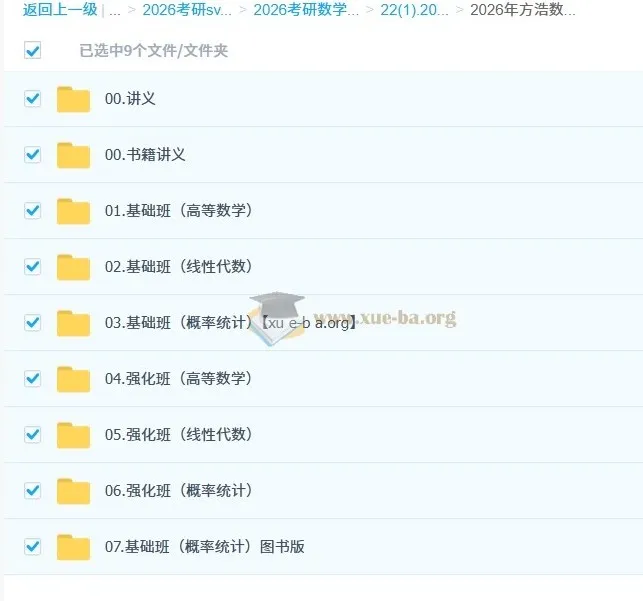 【2026考研数学】方浩数学全程班【方浩等】-百度网盘资源下载地址由网盘用户[卷卷**泡菜]分享,包含mp4等格式共计45个文件,文件大小为3.43GB,分享时间2025-08-08,此百度网盘资源由桔子搜网盘搜索引擎收集整理。...