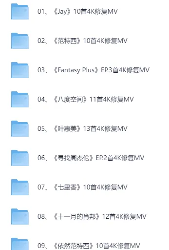 周杰伦MV-超清4K修复 1080P高清修复-夸克网盘资源下载地址由网盘用户[风度*偏的麋鹿]分享,包含mp4,mkv,ts等格式共计125个文件,文件大小为126.42GB,分享时间2025-03-01,此夸克网盘资源由桔子搜网盘搜索引擎收集整理。...