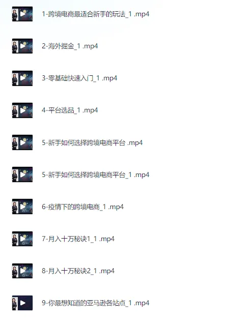 教你玩转亚马逊,跨境电商亚马逊教程,百万卖家出单宝典,课程。课程专为跨境电商新手设计,带你全面掌握亚马逊平台运作,从零基础起步到实现百万卖家的实战秘诀。涵盖新手适用的基本玩法、海外市场掘金方法,以及跨境电商平台选择与高效选品策略。课程还讲解疫情背景下的电商应变措施与月入十万秘籍,深入解析各站点特点及运营关键,助你避开常见弯路,快速提升业绩。 ├── 1-跨境电商最适合新手的玩法_1 .mp4 ├── 2-海外掘金_1 .mp4 ├── 3-零基础快速入门_1 .mp4 ├── 4-平台选品_1 .mp4 ├── 5-新手如何选择跨境电商平台 .mp4 ├── 5-新手如何选择跨境电商平台_1 …...