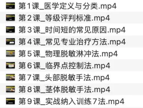 某xing学larry老师yan迟手法教学,课程。本课程针对yan迟手法提供系统化解析与操作指南。开篇从医学定义与分类切入,对yan迟手法的理论基础进行解读,并结合等级评判标准明确不同阶段的指标要求。紧跟着解析导致操作时间不达标的常见原因,通过案例剖析帮助学员找准制约环节。 在专业治疗方法模块之中,介绍物理脱敏淋冲法、临界点控制法与头部脱敏手法,深入讲解每种技术的适用场景、操作要点与注意事项。同时补充“圣体脱敏手法”,强调对全身感受的调节思路。在课程尾声,整合七大实战纳入训练方案,形成闭环演练体系,帮助学员将理论知识转化为可持续的实践能力。整个教学流于清晰、逻辑连贯,兼顾专业深度和上手易行,适…...