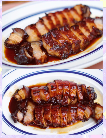 黑叉烧是一道以五花肉为主料的经典粤式菜肴,其正宗做法融合了腌制、炖煮和烤制等工序。