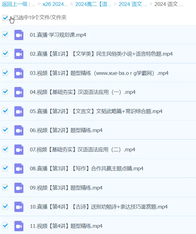 2024作业帮 语文 高二 【罗斐然】A+-百度网盘资源下载地址由网盘用户[里桑***番桑]分享,包含mp4等格式共计19个文件,文件大小为4.4GB,分享时间2025-02-09,此百度网盘资源由桔子搜网盘搜索引擎收集整理。...