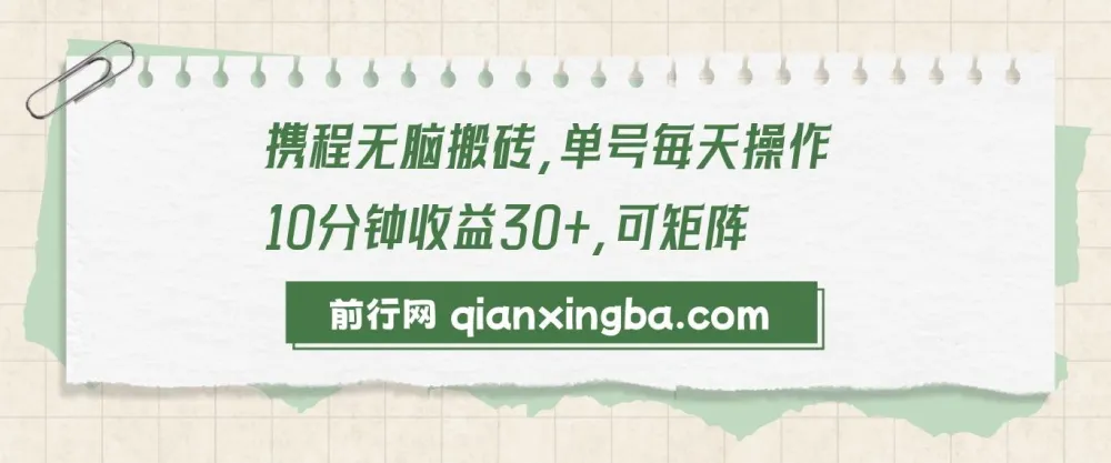 小白新手福音:携程无脑搬砖项目,单号操作10分钟收益30+,可矩阵可放大