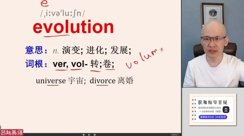 跟语言学博士吕超用科学方法高效背单词!通过120个经典例句串联4000核心词汇,配套121节高清视频课,从单词速记法到实战演练全覆盖。每节课精讲一个高频句型,同步掌握语法+词汇+地道表达,特别适合四六级/考研/雅思备考。附赠学习方法综述课,帮您建立长期记忆体系,告别死记硬背!现在学习可节省80%背单词时间,轻松突破词汇量瓶颈。...