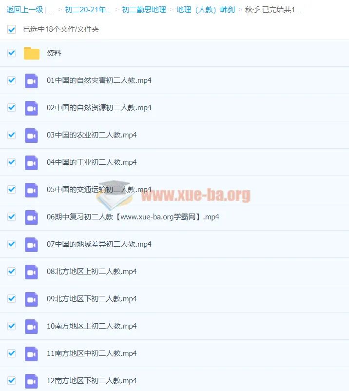 本课程专为初二学生设计,涵盖人教版地理全部核心内容,包括中国的自然灾害、资源、农业、工业及交通运输等关键知识点。通过16节精心编排的直播课程,学生不仅能够系统地掌握地理知识,还能通过期中、期末复习巩固学习成果。课程资料丰富,包括详细的笔记和视频讲解,帮助学生有效提升地理成绩,是初二学生不可错过的学习资源。...