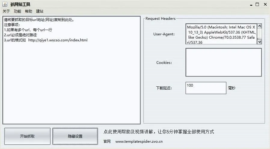 比如,当您抓取的目标网页需要登陆时,你可以用浏览器登陆目标网页,拿到其Cookies,将其填入此处即可。