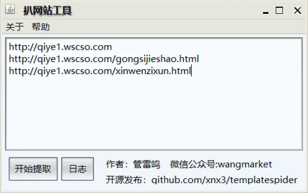 设置好后,点击左下角的“开始提取”按钮,便开始了自动扒这几个设置好的页面。软件左下方有两个按钮: 开始抓取 、 更多设置