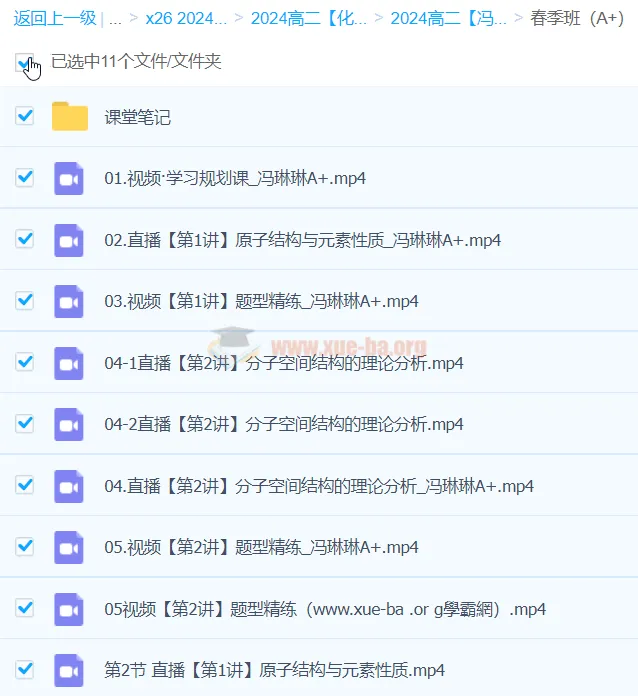 2024作业帮 化学 高二 【冯琳琳】A+-百度网盘资源下载地址由网盘用户[里桑***番桑]分享,包含pdf,mp4等格式共计145个文件,文件大小为23.3GB,分享时间2025-02-12,此百度网盘资源由桔子搜网盘搜索引擎收集整理。...