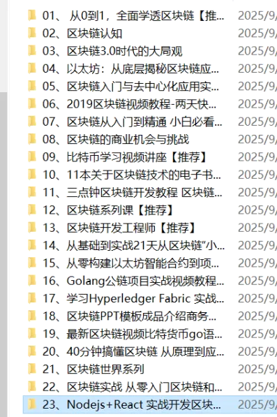 23套区块链教程合集是一套面向零基础至进阶学习者的系统化区块链知识宝库,涵盖从底层原理到实战应用的全方位内容。合集精选23套优质课程,横跨区块链基础概念、加密算法、共识机制(PoW、PoS、DPoS等)、智能合约开发、DeFi、NFT、链上数据分析与数字钱包安全等核心领域。
