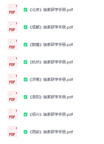 全国独家研学手册,包含北京、成都、敦煌、杭州、洛阳、济南、绍兴和西安的独家研学手册,资源。 研学手册是研学旅行课程设计的产品,既可以作为研学导师的“教案”,也可以成为学生的“教材”,由于研学旅行的特质,研学手册的设计需要具备综合性、探究性、实践性,同时还需要满足旅行附带的需求,提供旅行和生活的常识,研学手册等于是教科书+旅行指南+行为规范的综合性课程手册。 ├── ✅《北京》独家研学手册.pdf ├── ✅《成都》独家研学手册.pdf ├── ✅《敦煌》独家研学手册.pdf ├── ✅《杭州》独家研学手册.pdf ├── ✅《济南》独家研学手册.pdf ├── ✅《洛阳》独家研学手册.pdf …...