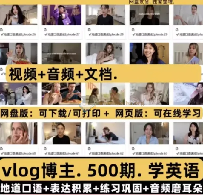 500期油管地道英语口语vlog博主实用口语音视频文档电子资料合集454B