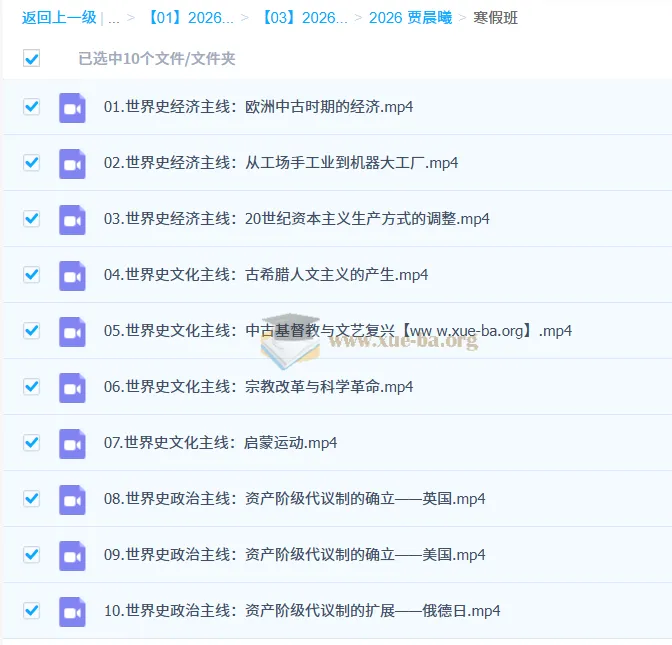 高中历史名师机构课程多个老师贾晨曦 2022寒假 高一历史寒假系统班 8讲完结-百度网盘资源下载地址由网盘用户[gus****i90]分享,包含mp4等格式共计8个文件,文件大小为2.59GB,分享时间2025-02-02,此百度网盘资源由桔子搜网盘搜索引擎收集整理。...