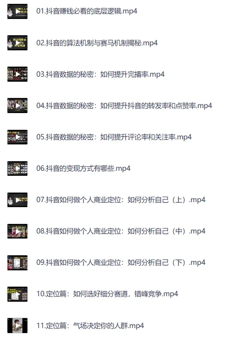 个人IP创富36节系统实战视频课,从商业定位到短视频流量变现,教你做个赚钱的抖音号2.44GB