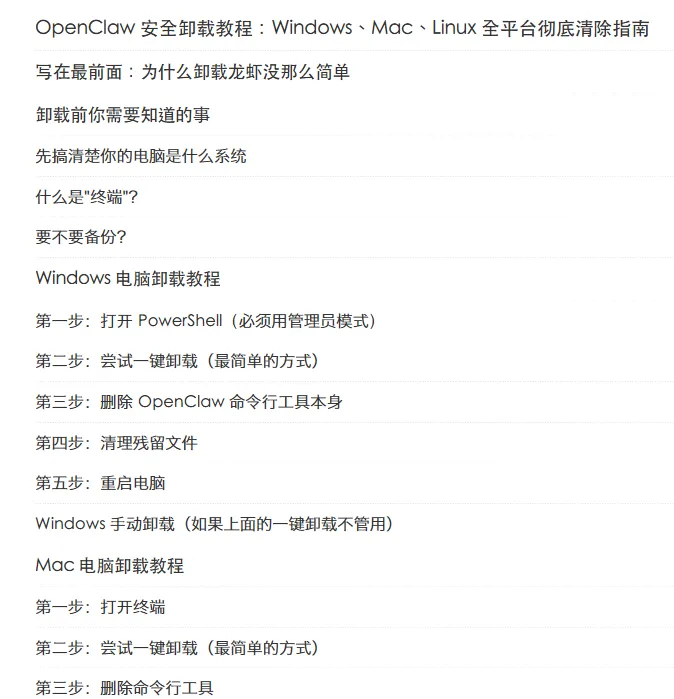 20. OpenClaw 安全卸载教程:Windows、Mac、Linux 全平台彻底清除指南.pdf1.41MB